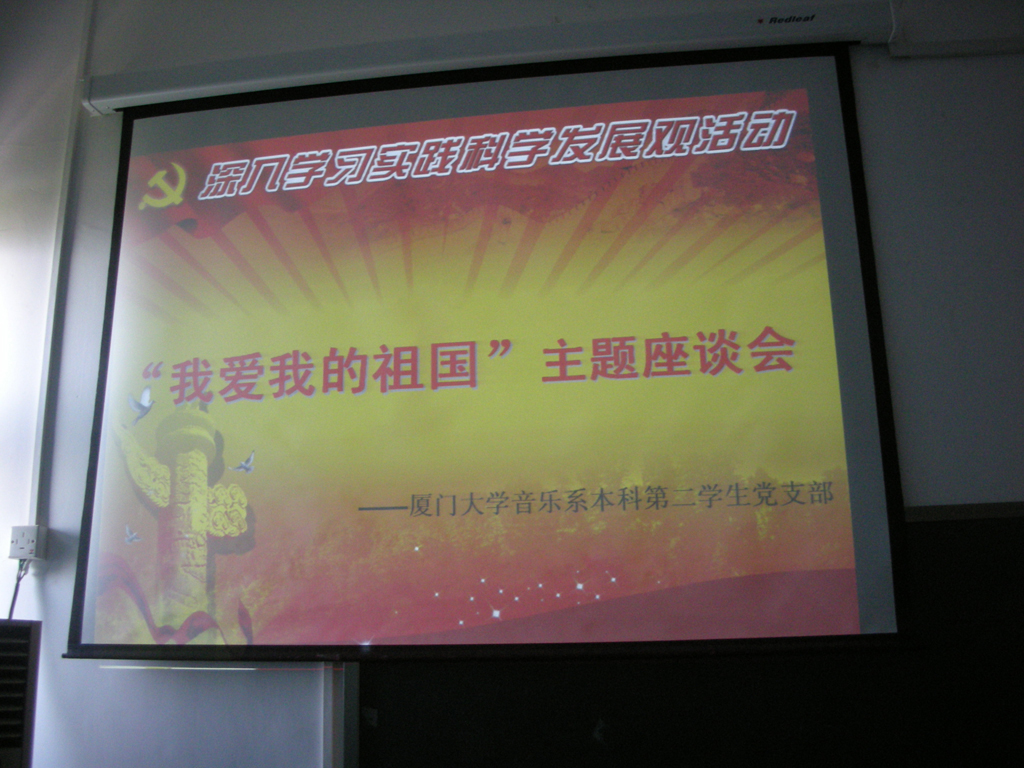 2009年7月17日上午九点,世界杯官网音乐系第二党支部的全体成员在音乐系503教室召开“我爱我的祖国”活动,即温家宝总理在清华大学同应届毕业生、在西安交通大学和湖南大学同学生重要谈话精神的贯彻活动。