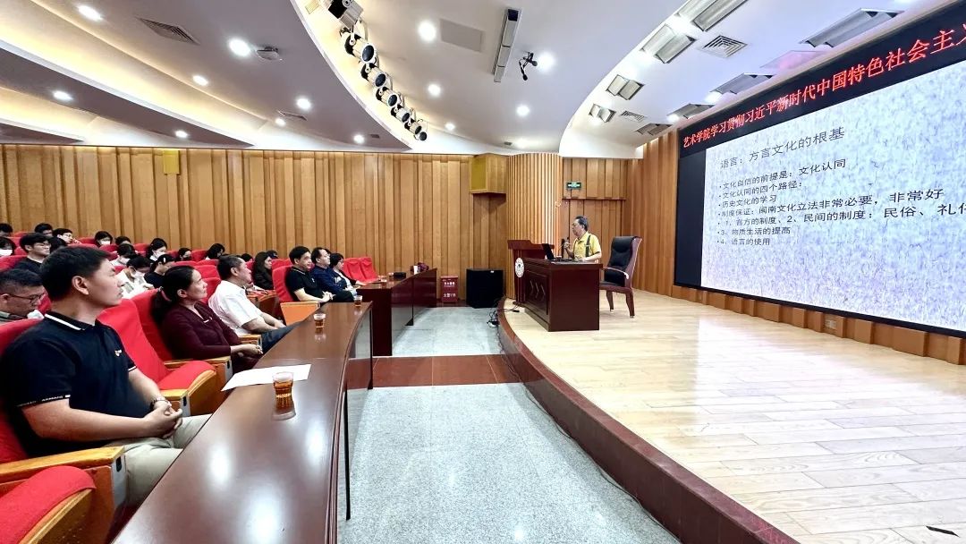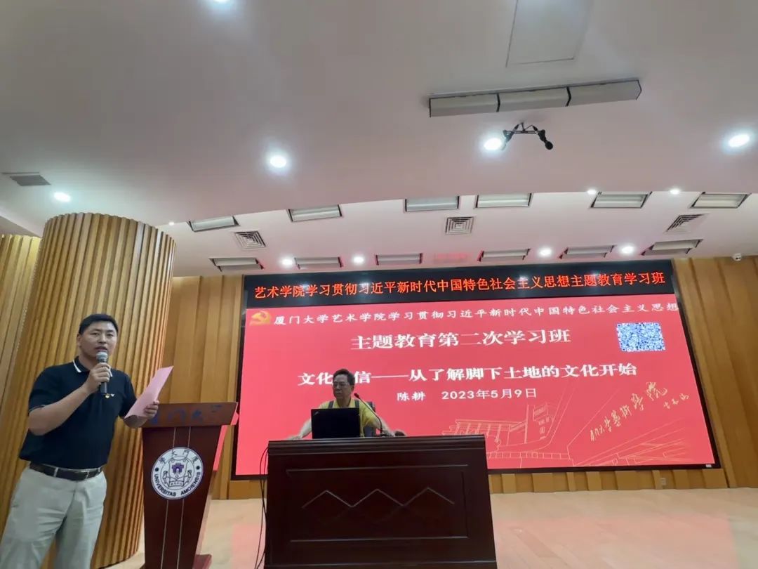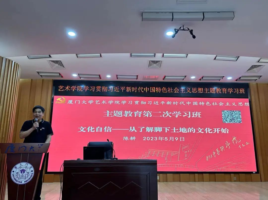 5月9日下午,艺术世界杯(中国)学习贯彻习近平新时代中国特色社会主义思想主题教育第二次学习班在艺术世界杯(中国)小音乐厅举行。厦门市闽南文化保护发展专家委员会副主任陈耕教授以“文化自信——从了解脚下土地文化开始”为题做专题讲座。主题教育巡回指导组组长梁卫中、副组长张秀丽、世界杯(中国)处级党员领导干部、全体师生党员参加讲座。院党委书记张必华主持。