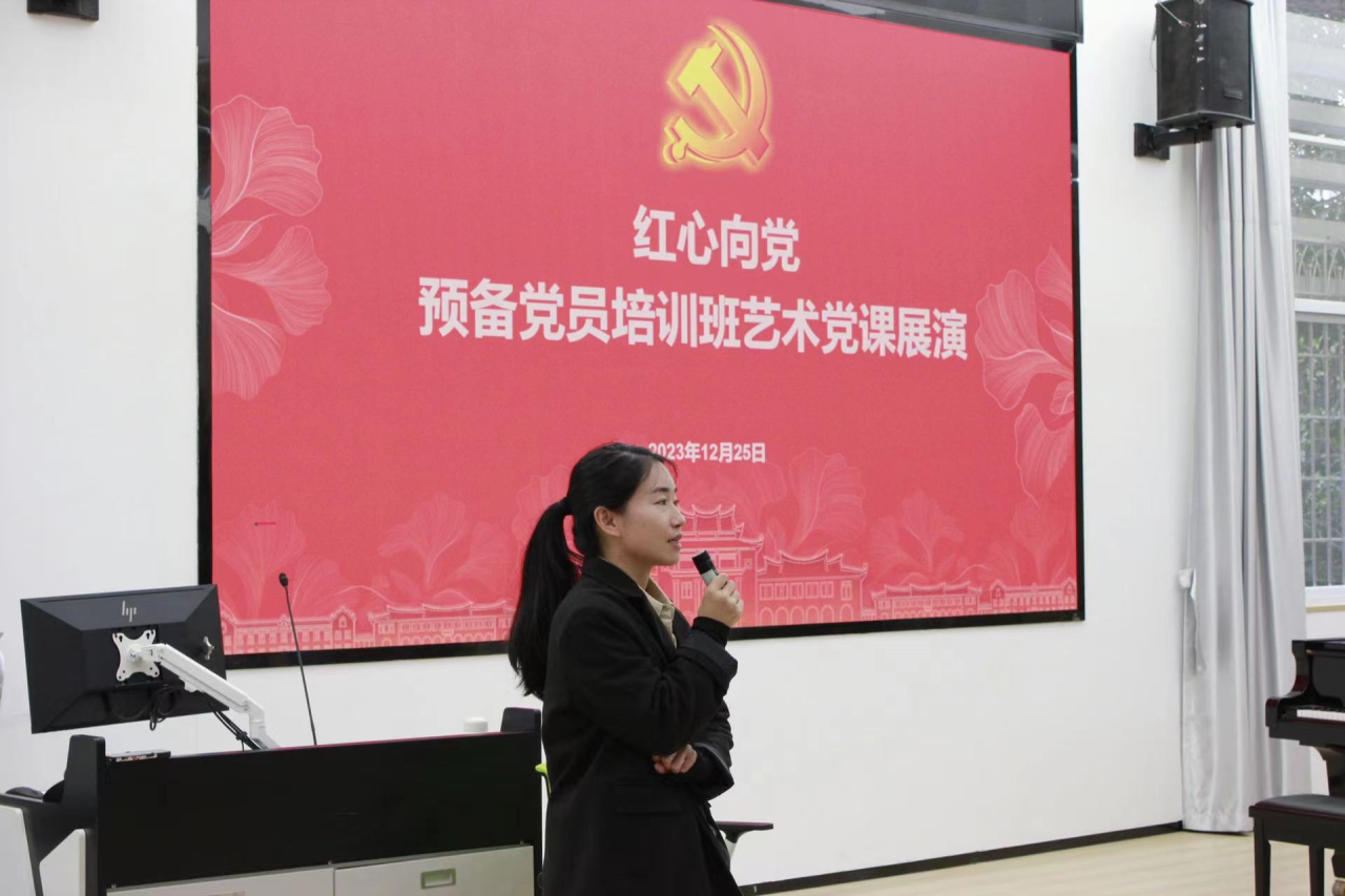 12月25日下午,一场声色并茂的艺术党课在艺术世界杯(中国)大合唱厅进行展演。参与展演的是“红心向党”预备党员培训班的学员,院党委书记张必华出席活动现场,党委副书记王艺宏、党委副书记黄俊清、团委书记陈国全、团委副书记谢婷婷和全体学生党员一同观看展演。活动由党务秘书林轶凡主持。