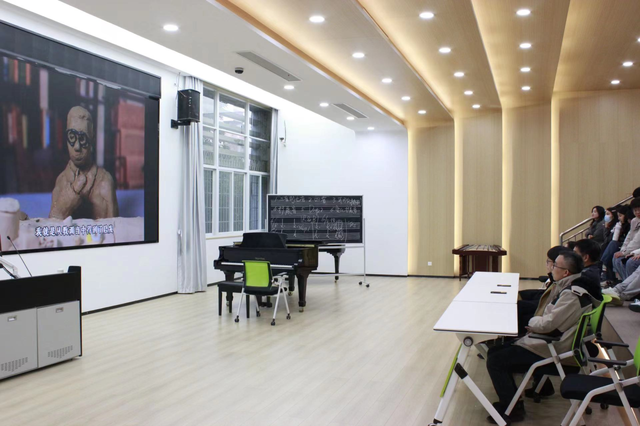 第二组同学展示了拍摄的短片,主要讲述了一个艺术专业的学生,为主题性展览创作是遇到的困难而感到迷茫时,在老师的指导下,学习习近平新时代中国特色社会主义思想,走出教室,收集素材,最终获得成长的故事。视频主要分为四个篇章,分别为《信仰》《实践》《传承》《初心》。在本篇章中,主角回忆起自己考学时的努力,最初学习绘画的快乐和美好,将视野从“画好自己的画”中移开,投向身边那些值得关注的人与事,逐渐找回了自己绘画的初心——“表达自己内心至深的情感”。