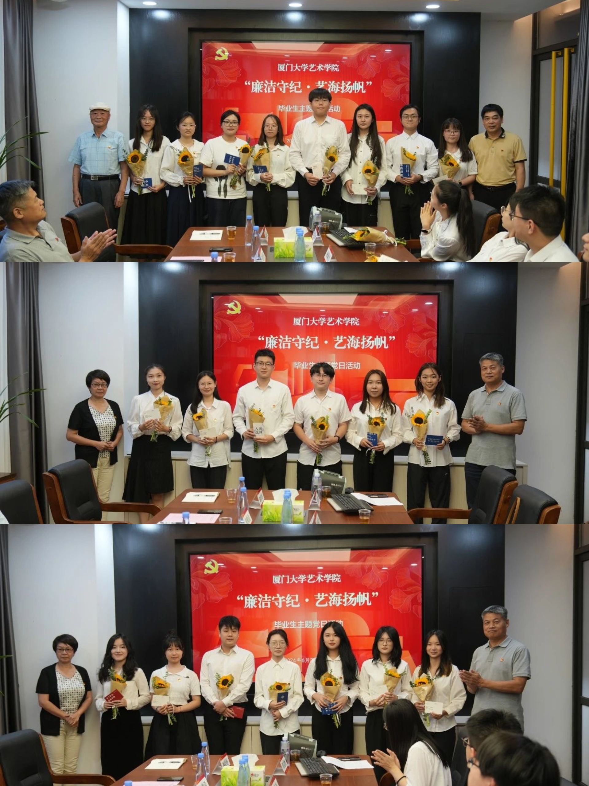 为加强毕业生思想政治教育,推动毕业生党员塑造廉洁品格,强化纪律意识,6月25日,艺术世界杯(中国)“廉洁守纪·艺海扬帆”主题党日活动在多功能会议室举行。院党委书记张必华,院关工委副主任刘以光,院党委副书记王艺宏、黄俊清,党务秘书林轶凡,团委副书记、辅导员谢婷婷以及全体毕业生党员参加活动,活动由音乐系本科生党支部副书记洪嘉怡主持。