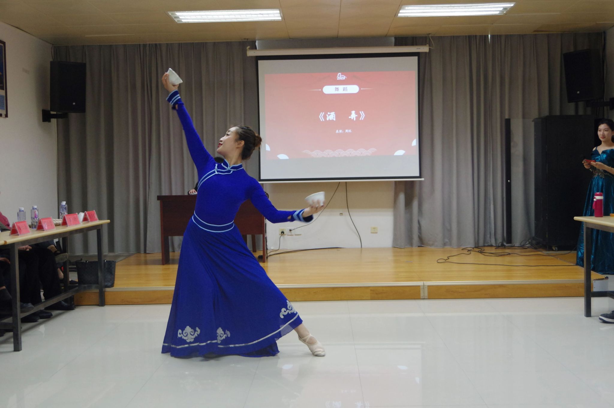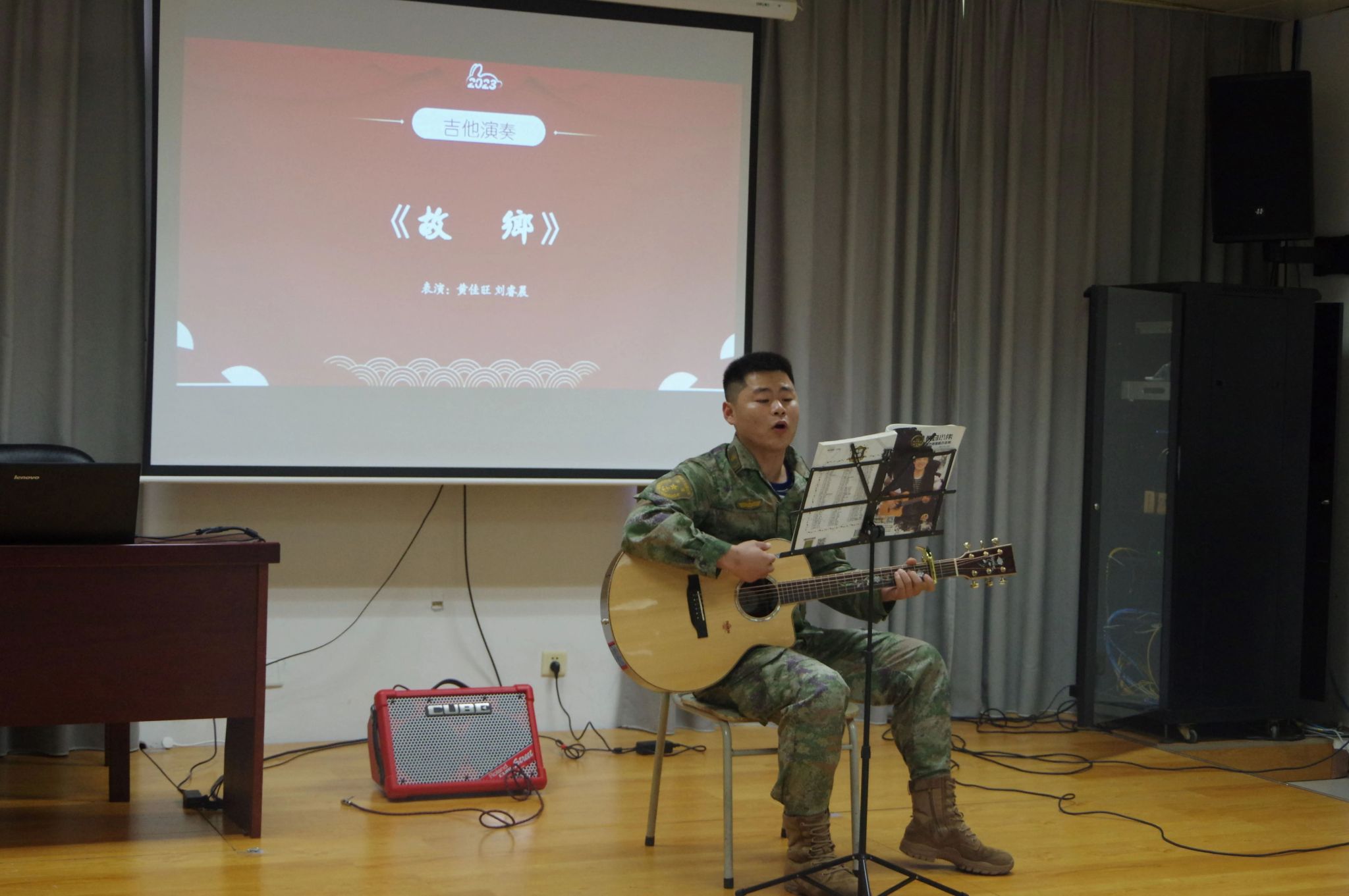 2021级的蔡烁宇同学独唱歌曲《敕勒歌》,曾乐的笛子独奏《牧民新歌》,周悦的独舞《酒弄》头顶瓷碗另全场师生和官兵们惊叹,演出从古典到现代,从乐曲到舞蹈……多种艺术形式轮番上演,令人目不暇接,战士们和着节奏打节拍,更有舞蹈学生的即兴伴舞,观众们沉浸到欢乐的海洋中。