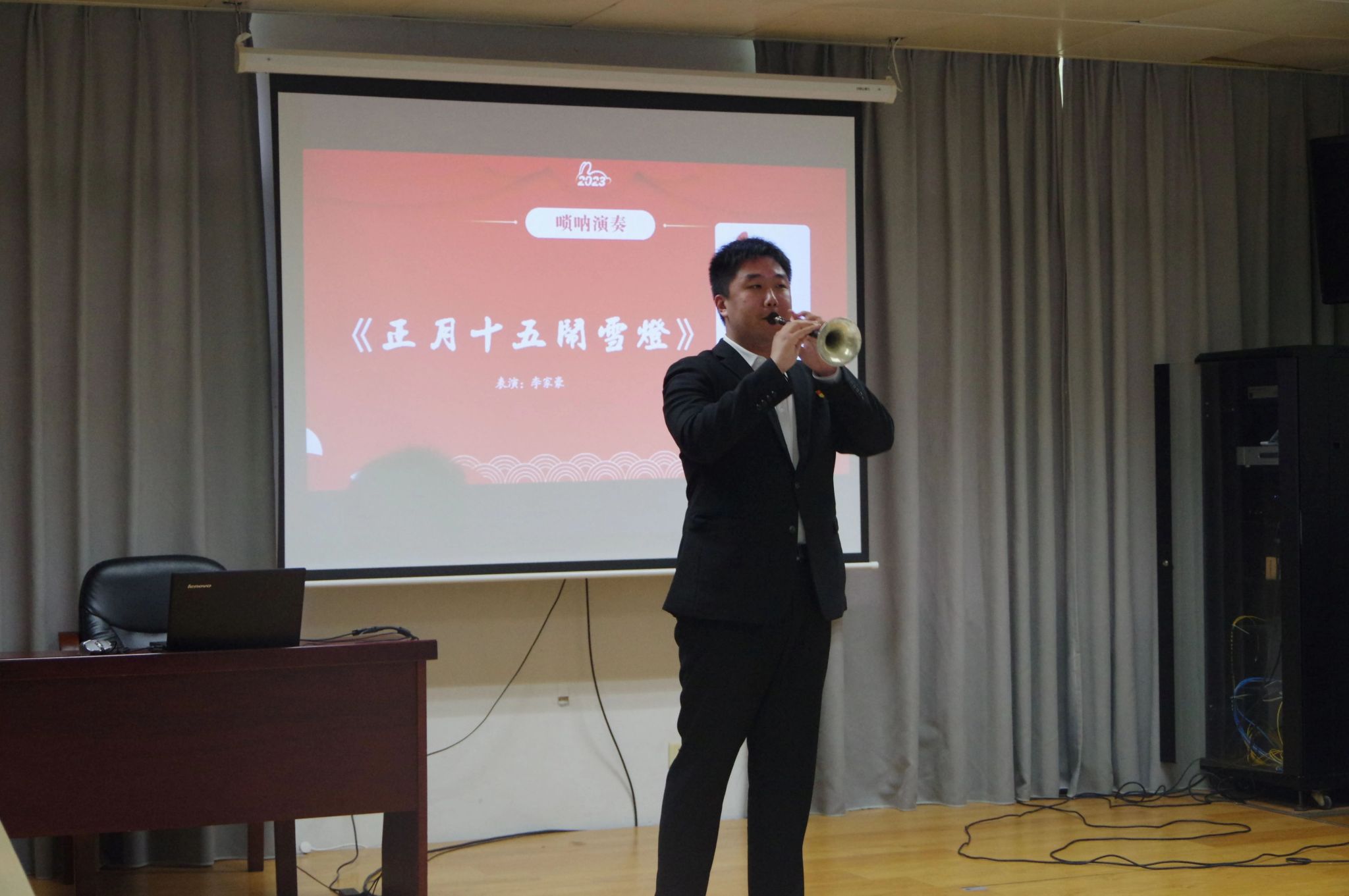 2019级本科生李家豪带来的唢呐独奏《正月十五闹雪灯》,唢呐一响,气势恢宏,雄壮激昂,全场振奋,观众们如痴如醉,反响热烈。