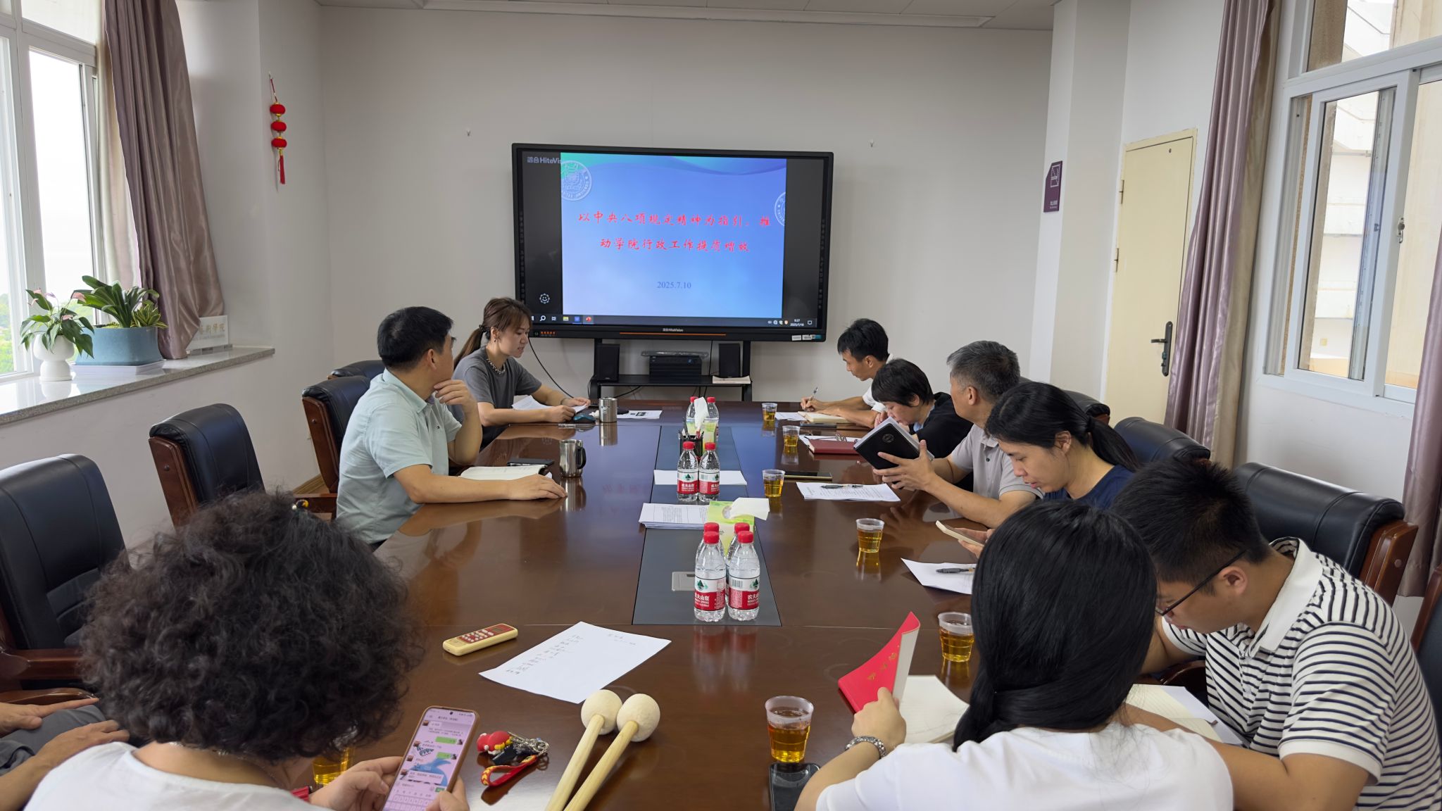 为推动深入贯彻中央八项规定精神学习教育走深走实,7月10日上午,院部教工党支部在艺术世界杯(中国)A411召开专题党课学习会暨全院行政人员工作例会,副院长、教工党支部书记杨琳以《以中央八项规定精神为指引,推动世界杯(中国)行政工作提质增效》为题讲专题党课,院党委书记张必华出席会议,世界杯(中国)全体行政人员参加学习。