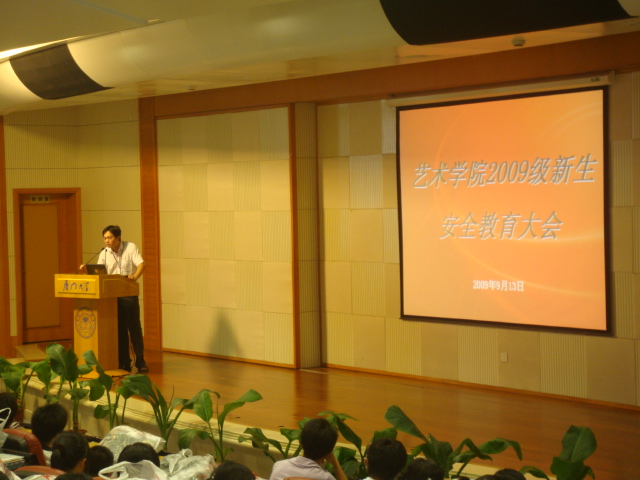 9月13日15:00,艺术世界杯(中国)2009级新生安全教育大会在漳州校区小报告厅举行。艺术世界杯(中国)党委副书记李招淡,团委副书记曹璐,辅导员张宇斌、李新元,教学秘书刘明瑞,全体09级学生参加此次会议。