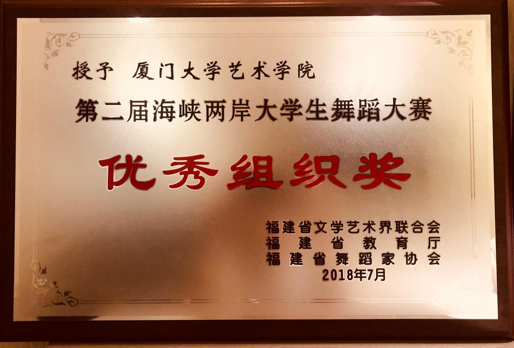 7月15日至7月17日,第二届海峡两岸大学生舞蹈大赛在福州举行,此次大赛共吸引来自海峡两岸30多所高校的80个舞蹈节目参加。我院选送的由李娜教授、青年教师欧锐创作的原创群舞作品《心升》荣获“组委会大奖”(专业组最高奖)、表演银奖、创作银奖,厦大艺术世界杯(中国)荣获优秀组织奖。