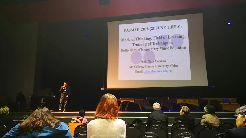 周显宝教授长期以来致力于艺术与科学的跨学科研究,尤其在音乐学与神经生物学交叉研究方面成果突出,在该领域处于领先地位,受到国内外学术界的关注;此次,作为两位主题发言人(Keynote Speaker)之一受到了泛非音乐教育大会组委会的特别邀请,不仅用全英文做了《思维方式·学习视野·技能掌握——来自基础音乐教育的反思(Mode of Thinking, Field of Learning, Techniques of Training: Reflections of Elementary Music Education)》主题报告,充分利用40分钟的发言时间向大会介绍了他的最新研究成果,引起了代表们的浓厚兴趣。