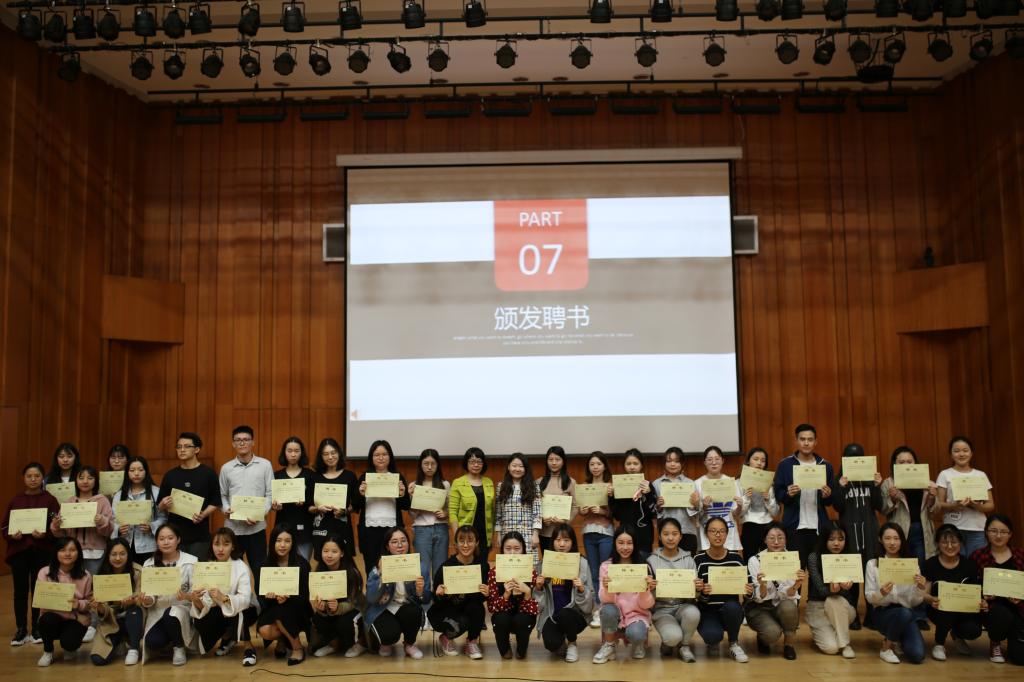 开班仪式在邓正虎带来的《你给我的感觉》陶笛独奏与陈凯强带来的《Drifting》吉他独奏中拉开帷幕,艺术世界杯(中国)党委副书记王艺宏老师为爱乐园第七期开班致词。主持人涂商羽同学还结合了由爱乐园工作人员精心准备的VCR介绍了本期爱乐园的基本情况,分班情况,带领大家走近音乐的大家庭。接着她强调了爱乐园的教员及学员的应遵守的规章制度,并邀请艺术世界杯(中国)党委副书记王艺宏老师、辅导员张秀丽老师、爱乐园学生负责人张宇为爱乐园的教员颁发聘书并合影留念。开班仪式结束后,到场的教员、学员和工作人员合影留念,因其他原因未到场的学员,爱乐园将会安排教员及时与他们联系,并确定上课的相关事宜。