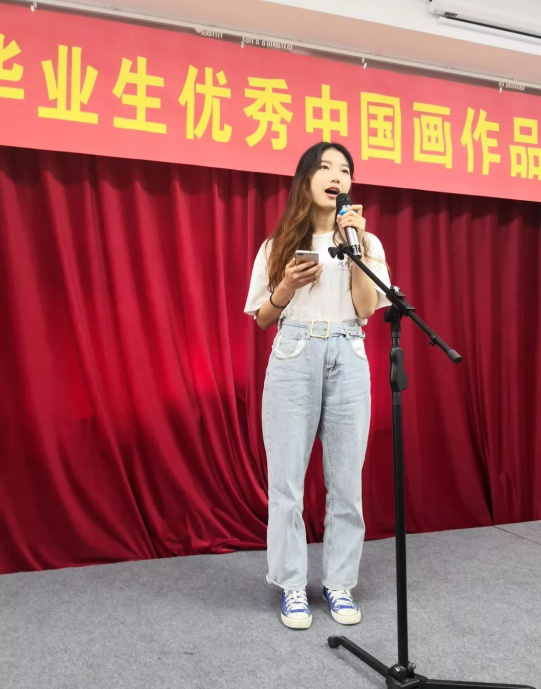 厦门大学国画专业许瑜婧同学作为优秀参展学生代表发表感言说,能有此机会使毕业作品得到更多关注和指导、与其他高校毕业生交流实属难得,展出的毕业作品是同学们四年的总结,包含作者对艺术的认知、对未来的期望,并感谢母校的培养和老师的创作指导。