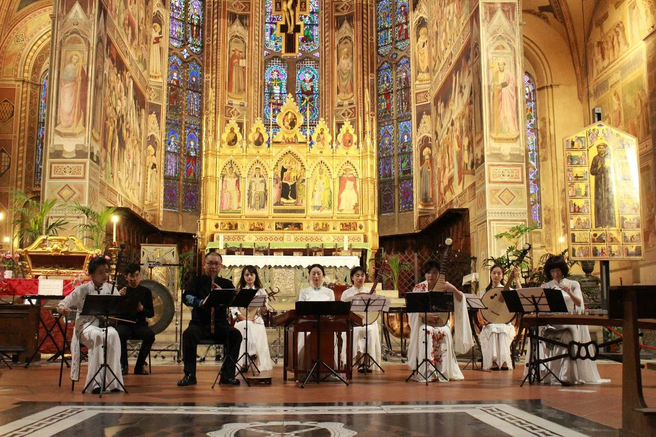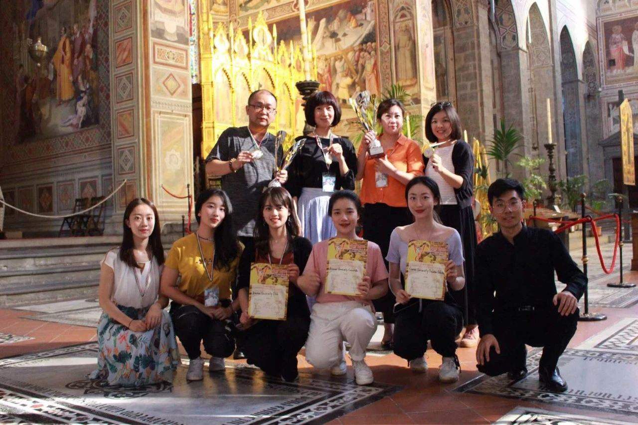 我院师生此次应邀参赛,师生们在四个多月时间里,充分利用课余时间进行排练,精心编排了9首作品;在比赛之余,还在组委会的安排下,分别在佛罗伦萨著名的韦奇奥宫、圣三一礼堂、圣十字大礼堂进行了演出,在当地献上了富有中国特色的民族音乐。