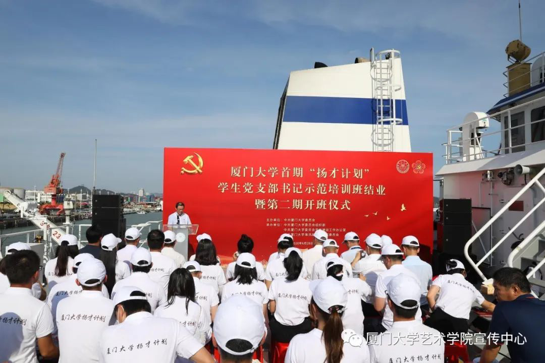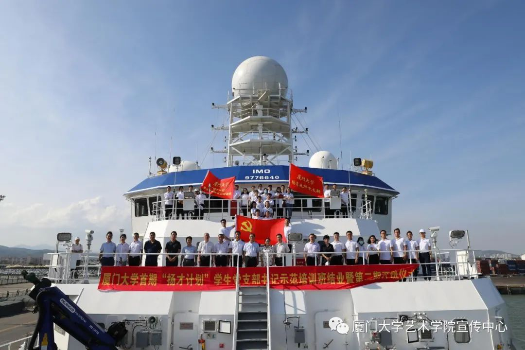 6月28日下午,厦门大学首期“扬才计划”学生党支部书记示范培训班结业暨第二期开班仪式在厦大“嘉庚”号科考船上隆重举行。仪式对首期“扬才班”优秀学员标兵和优秀学员进行了表彰,艺术世界杯(中国)学生骨干方舒晴、叶宇晴荣获“优秀学员”(全班仅10名)。仪式上还宣读了《关于扬才先锋党支部支部委员会委员、书记、副书记人员组成的决定》,艺术世界杯(中国)学生骨干、二期“扬才班”学员蓝艳担任扬才先锋党支部副书记。