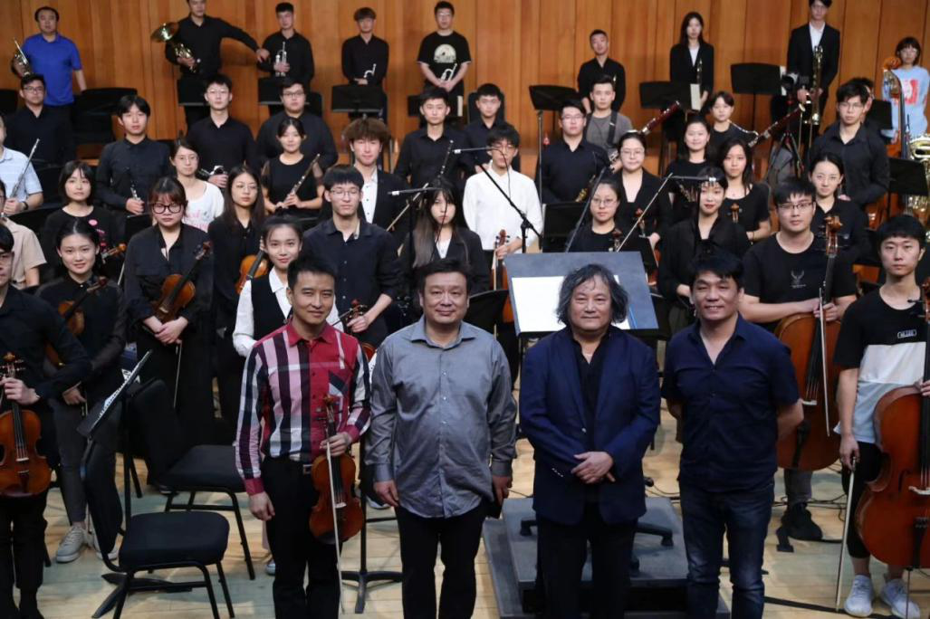 在黄飞副教授的指挥下,乐团为汤沐海先生演奏了近期排练的作品——《生命》交响曲。汤沐海先生赞扬了师生们的演奏,并对乐团排练的许多细节提出了专业的建议。同时,汤沐海先生鼓励同学们积极提出自己的想法,从弦乐到管弦、再到打击乐声部,大家在汤沐海先生的鼓励下,都踊跃地举手发言。开放性的讨论,也让大家对乐团的有了新的认识和思考。最后,汤先生亲自上台为乐团进行排练指导。同学们热情十分高涨,对如何更好地在乐团中演奏,有了更加深刻地理解。