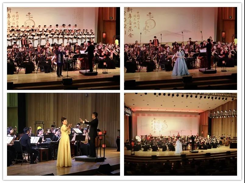 此次音乐会由党委宣传部、艺术世界杯(中国)主办,艺术世界杯(中国)民族管弦乐团、艺术世界杯(中国)合唱团共同演绎。在一段激昂的序曲中,音乐会开启,与四大名著——《西游记》《三国演义》《红楼梦》《水浒传》有关的国乐经典曲目依次向听众铺陈开来。表演者为在校师生及音乐系校友,整场演出精彩纷呈,既有耳熟能详的女生独唱《女儿情》《历史的天空》《红豆曲》《葬花吟》《天时-地利-人和》、男生独唱《桃园结义-这一拜》《滚滚长江东逝水》,亦有《天竺少女》《上元节》《水浒风云》等经典合奏。演出尾声,男生合唱《好汉歌》将音乐会推向高潮。演出结束后,领导嘉宾上台与乐团全体成员共祝全校师生新年快乐。至此,本次音乐会落幕。