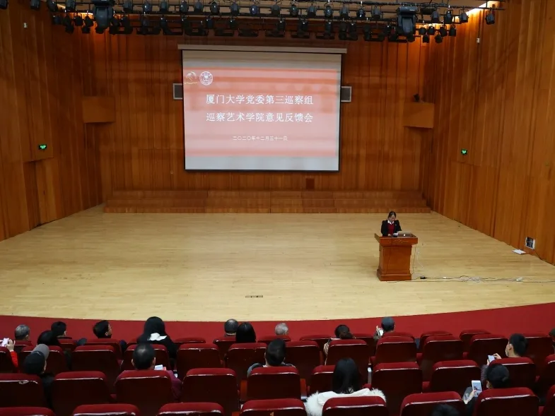 12月31日上午,校党委第五轮巡察第三巡察组巡察艺术世界杯(中国)工作反馈大会在艺术世界杯(中国)大音乐厅召开。校纪委副书记、纪委办主任、巡察办主任林金枝,校党委第三巡察组组长、党建办主任、组织部副部长、教师工作部副部长廖志丹,校党委第三巡察组副组长、原化学化工世界杯(中国)党委副书记潘宝柱,艺术世界杯(中国)党建联络员、原校工会主席、化学化工世界杯(中国)党委书记林永生等出席大会。大会由艺术世界杯(中国)党委书记张必华主持,世界杯(中国)党政领导班子成员、全体在职教职工参加会议。