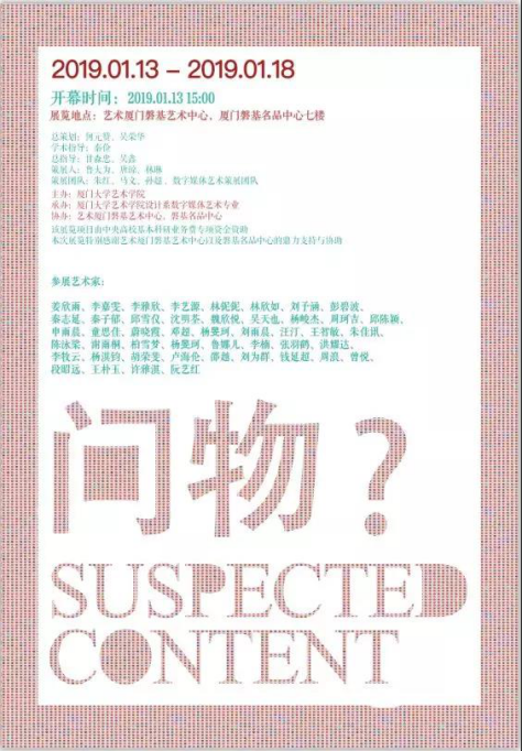 本次专题展览由世界杯官网主办,世界杯官网设计系数字媒体艺术专业承办,艺术厦门磐基艺术中心,磐基名品中心协办。本次展览特别感谢艺术厦门磐基艺术中心以及磐基名品中心的鼎力支持与协助。