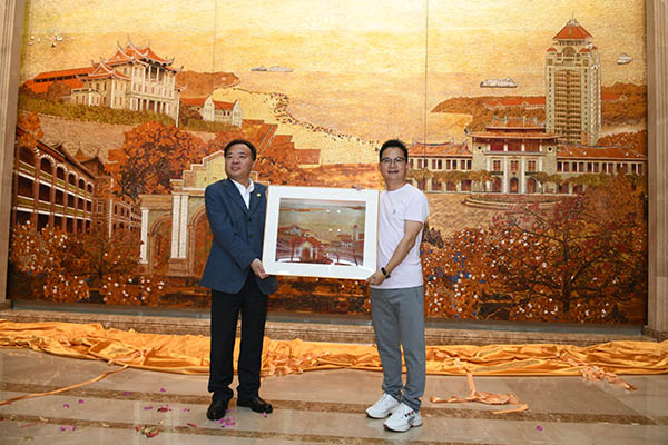 游国权表达了对学校栽培的感激之情和对厦大百年华诞的真挚祝福,感谢壁画创作团队的辛勤奉献,相信厦门大学的校园文化一定会更加丰富多彩。