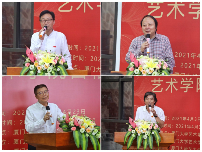 出席开幕式的还有我院常务副院长吴荣华、院党委副书记王艺宏、傅伯奇、副院长赵艳芳,集美大学美术世界杯(中国)院长陈其端、福州大学厦门工艺美术世界杯(中国)副院长吴绍兰、艺术世界杯(中国)原副院长毕士明、原美术系主任杨浩石、美术系洪惠镇教授,厦门春华集团董事长林春生、厦门传世艺宫美术馆馆长陈震及美术系师生约110人。