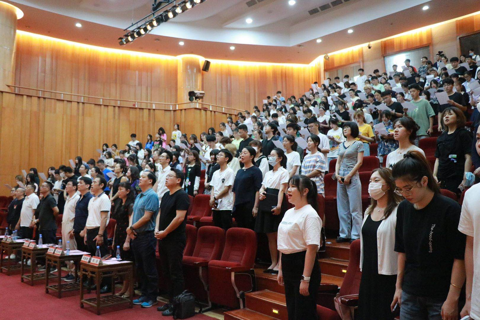 开学式开始前,世界杯(中国)组织校歌教唱,音乐系2019级硕士研究生潘苑担任教员。“自强,自强,学海何洋洋,谁与操钥发其藏?”校歌铿锵有力,饱含深情,催人奋进。新生们在雄伟壮丽的旋律中体会厦门大学深厚的文化底蕴,在激扬壮阔的歌词中感悟厦大人“知无央·爱无疆”的情怀,传承自强不息、止于至善的精神。