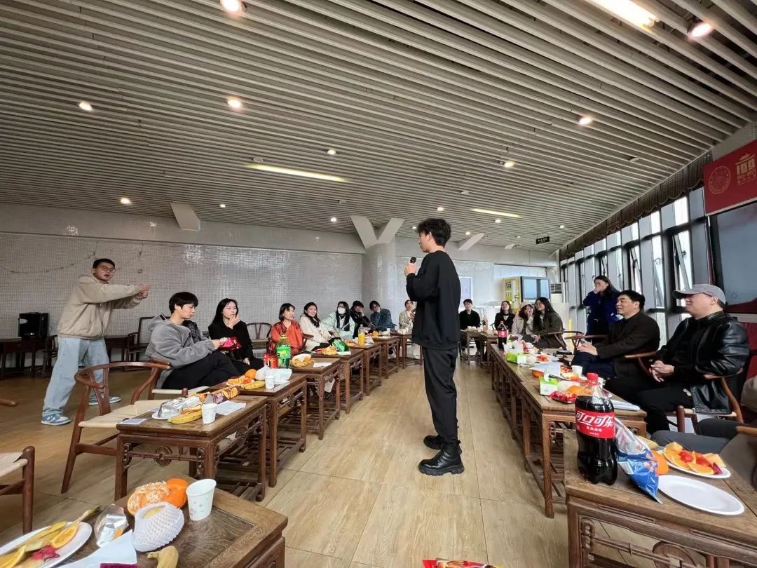 会场气氛逐渐热烈,大家举杯共饮畅叙幽情,颇有“家人闲坐,灯火可亲”的温馨意趣。会上还进行了游戏、抽奖和舞蹈表演,才艺卓绝的艺院学子们用轻快活泼的舞姿将活动气氛推向高潮。