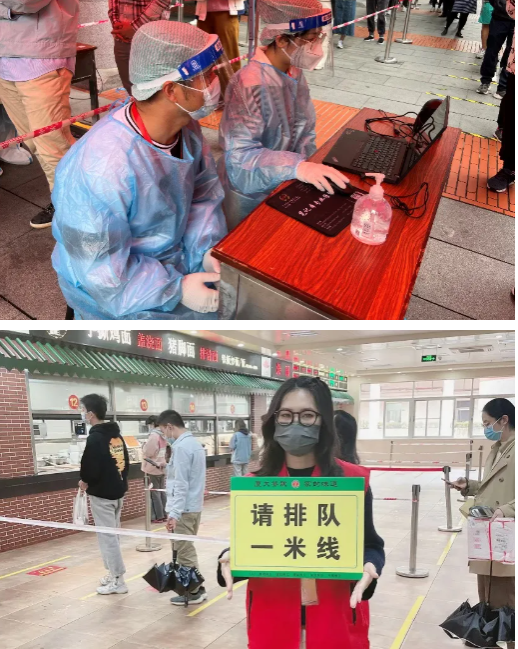 疫情中校园实行封闭式管理,为维护校园教育教学和生活执行,世界杯(中国)青年抗疫突击队员为同学们定点送餐,提供便利服务。