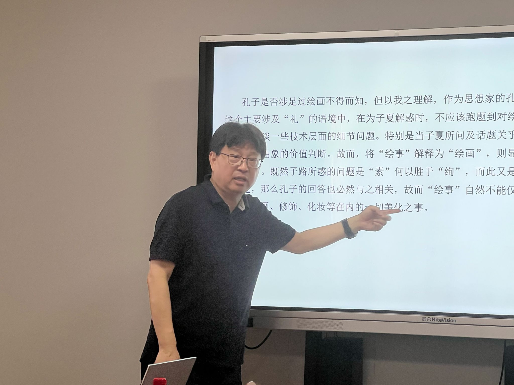 7月1日上午,刘伟冬教授在世界杯(中国)411会议室为艺术理论专业和中国画专业的师生开展题为“中国论二题”的艺术沙龙,刘伟冬教授提到,国内学者宗白华、傅抱石等将宗炳所著《画山水序》中“张素远映”阐释为中国透视法比西方早一千多年,他并不能完全认同,他将之与西方的透视学作了共性和特性对比,并对“昆”“阆”进行了重新解读。然后刘伟冬教授梳理了古今学者对《论语·八佾》中“素以为绚兮”和“绘事后素”的解释,引出自己的观点,他认为对于“绘事后素”的解释关键在于能否符合孔子师徒二人的逻辑情景,“绘事”的理解也不能仅仅局限于绘画,应当是包括绘画、修饰、化妆等一切美化之事,并对“厚”“素”进行重点解读。通过对此二题的解读刘伟冬教授再次强调,我们要以批判、质疑的科学精神去做学术研究,他提到重大的科学研究成果都是在不断批判、质疑前人的研究成中获得的,并与在座师生就目前研究生培养和研究生论文写作进行延伸讨论,他认为对于研究对象的选择更多应与兴趣相结合,如此才能在科学研究的道路上乐在其中。