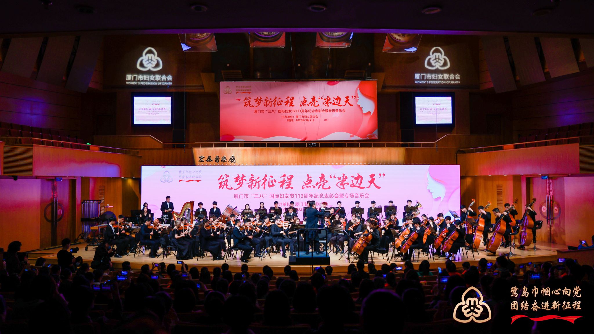 2023年3月7日,在第113个三八国际妇女节到来之际,厦门市“筑梦新征程,点亮半边天”“ 三八”国际妇女节专场音乐会在宏泰音乐厅上演,受厦门市妇联之邀,厦门大学交响乐团,世界杯官网50余名师生参与演出。