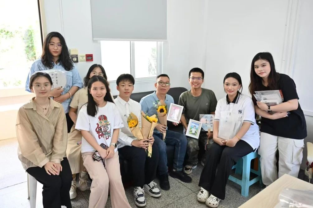 2024年9月10日上午,同学们怀揣着对老师们深深的敬爱与感激之情,将亲手制作的书法漆扇和装裱好的卡通画像连同美好祝福赠予了老师们。师生在欢笑中度过美好的教师节。