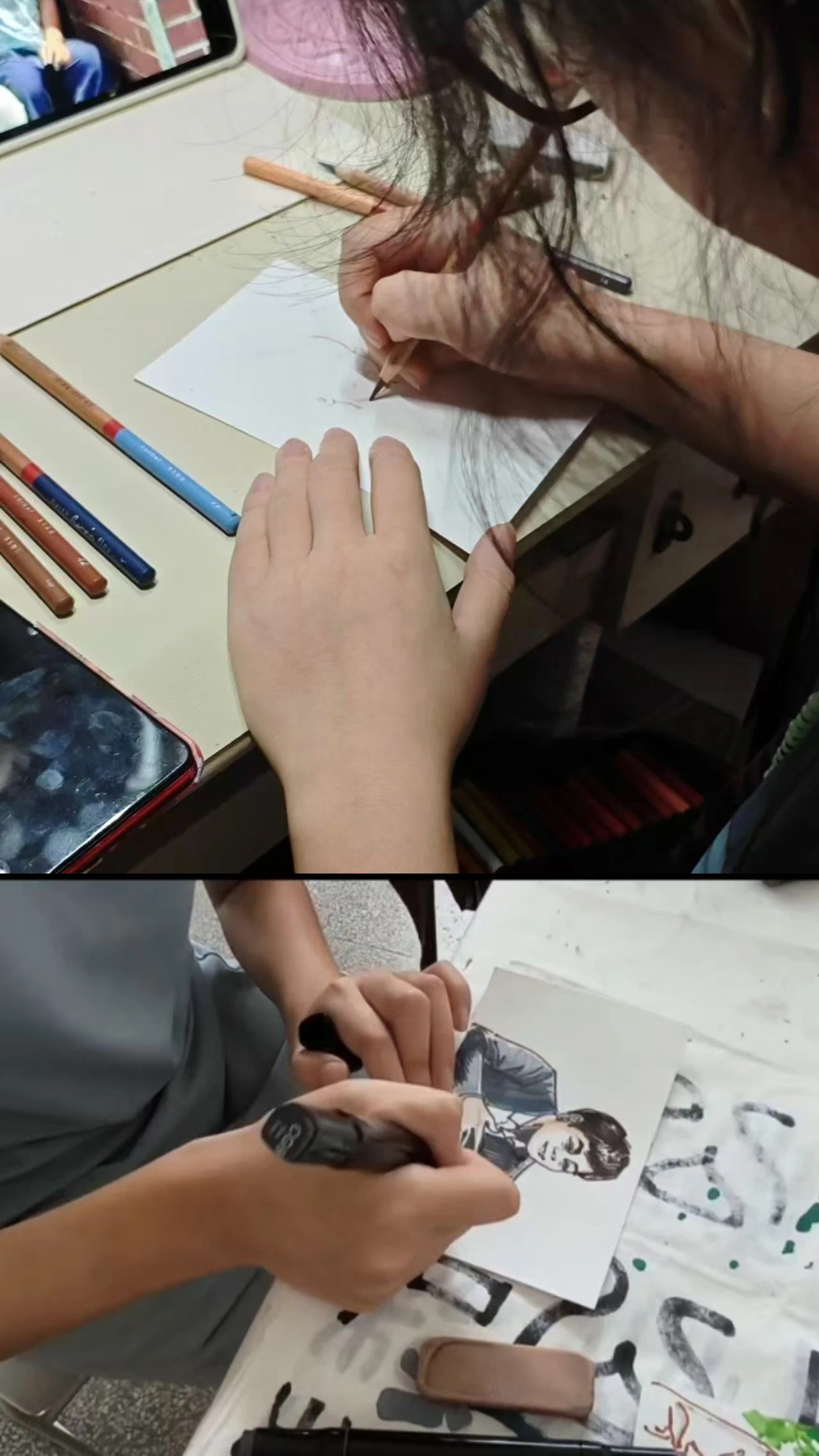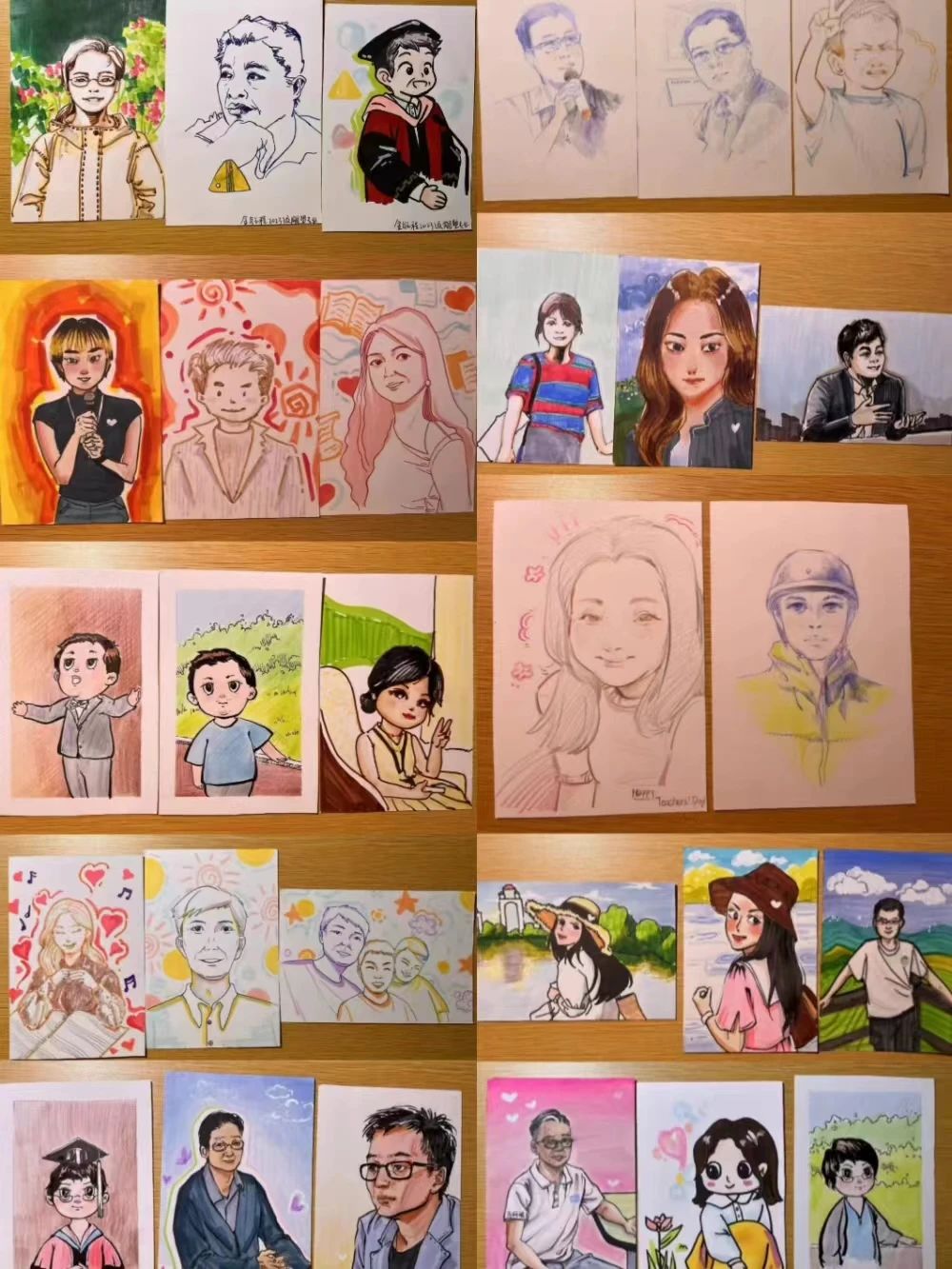 同学们将这些充满艺术气息的卡通头像精心装裱,让它们成为老师们办公室里独一无二,温情可爱的小亮点!