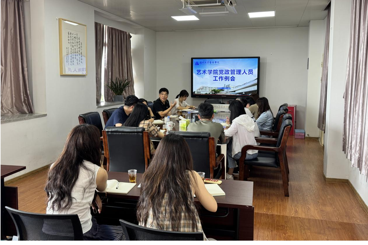 9月27日上午,艺术世界杯(中国)召开党政管理人员工作例会。会议由副院长杨琳主持,院党委书记张必华作强调讲话。全体党政管理人员、辅导员、专业技术人员等参加会议。