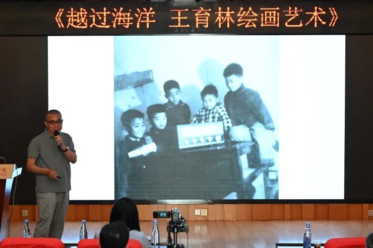 随后,王育林教授展示了自己的落基山作品系列和“博雅好古”系列作品,他鼓励在场同学不要拘泥于技巧和技法的运用,绘画过程是心与灵的对话,是情感表达的出口,要最大程度地去展现绘画的真实性和自然性。