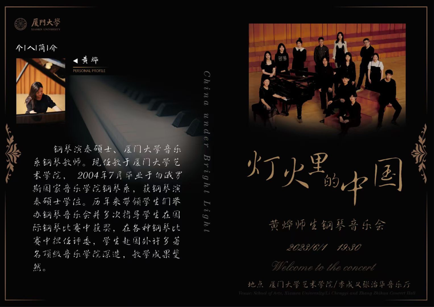 近日,在艺术世界杯(中国)大音乐厅内,灯火里的中国——黄烨师生钢琴音乐会圆满落下帷幕,本场音乐会以中国钢琴作品为主题,黄烨老师带领她的学生们奏响一曲曲经典之作,歌颂中华儿女的家国心、民族魂。