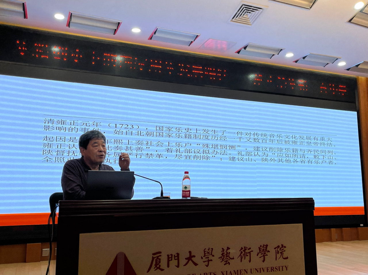 此次讲座,项阳教授跨学科角度出发,以乐籍为切入点,讲述了“专业、贱民、官属乐人”定位的乐籍制度的前世今生。乐籍存续期国家礼乐和俗乐两条主导脉络均由这个群体创承,对中国音乐发展与传承具有重要意义。雍正元年禁除乐籍回归民籍后,这一群体将其承载的国家用乐积淀于民间,形成了“官乐民存”的现象。项阳教授在数十年研究中,将看似松散的传统音乐活态与历史上国家用乐群体创承有效接通,诠释传统国家用乐民间积淀所显现的整体一致性和区域丰富性的内涵。